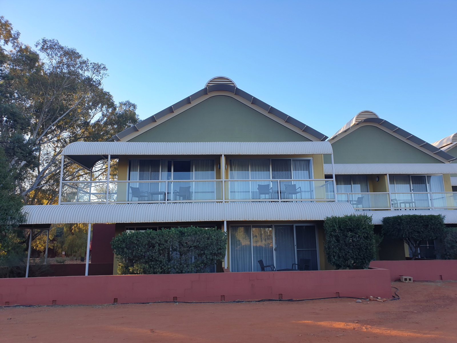 Beim Uluru gibt es nur die Möglichkeit, in einem der Hotels oder Campingplätze innerhalb des Ayers Rock Resorts zu übernachten. Wir entschieden uns für das Desert Gardens Hotel➚ und zwar wegen den Zimmern mit Aussicht vom Balkon auf den Uluru. Und so hatten wir quasi rund um die Uhr Ausblicke auf den Uluru, so richtig zum Sattsehen 😅. Dachten wir, ist uns aber nicht gelungen, denn gerne möchten wir nochmals hin.