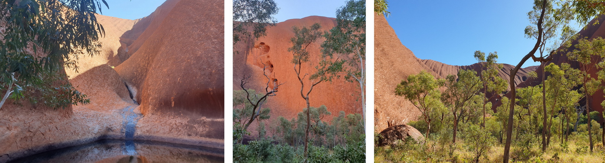 Der Kuniya Walk ist eine andere recht einfache Wanderung von etwa einem Kilometer. Sie führt zur Muṯitjulu Waterhole. Es ist das größte Wasserloch rund um Uluru und es war tatsächlich nach der Regenzeit noch reichlich mit Wasser gefült. Drumherum sehr grün, wie eine kleine Wüstenoase.
